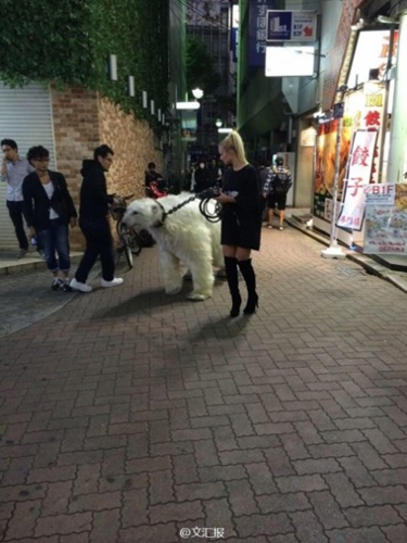 据凤凰网报道,近日在东京涉谷发生了一阵不小的骚动,一个金发碧眼的美女牵出了她非常拉风的宠物出门遛弯,这个宠物不是常见的猫狗,而是生活在北极的白熊!