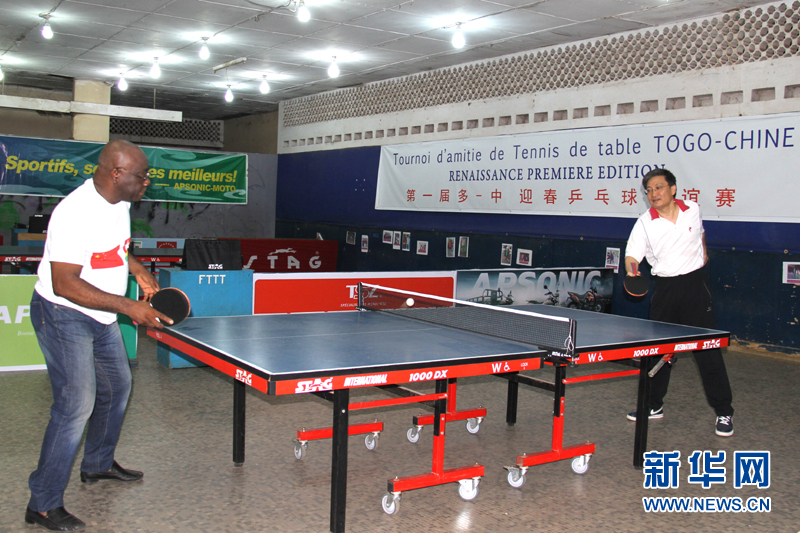 多哥乒乓球国家队23日在洛美与当地华侨华人举行友谊比赛。中国驻多哥大使刘豫锡、多哥乒乓球协会主席洛科·科优,以及洛美大学孔子学院院长胡登全也应邀上场挥拍展示球艺。