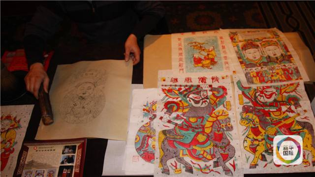 1月26日,在韩国首尔市乐天酒店内,湖北民间艺人展示老河口木版年画雕刻技艺。