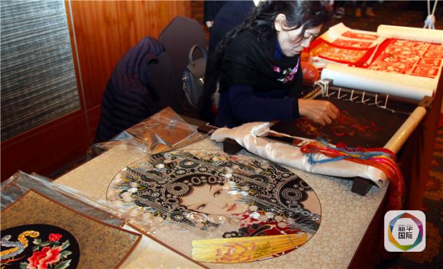 1月26日,来自湖北大冶的民间艺人展示湖北非物质文化遗产——大冶刺绣。