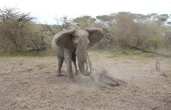 幼象中猎捕者陷阱失去知觉 母象无力唤醒(图)