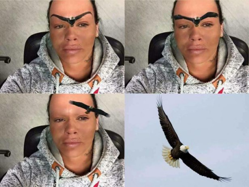 女子奇特纹眉爆红 网友配狗脸鹰身恶搞(组图)