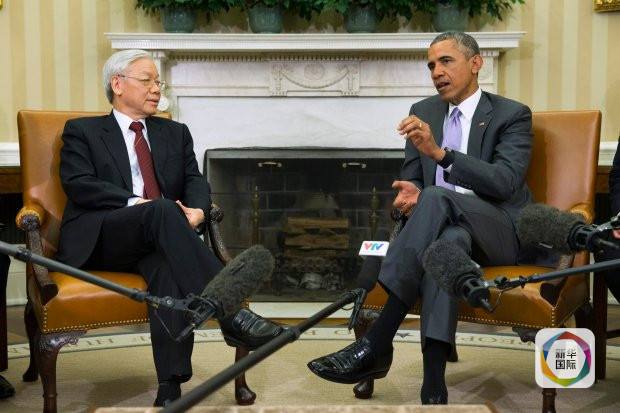 2015年7月7日,美国总统奥巴马在白宫与越南共产党中央总书记阮富仲会谈。