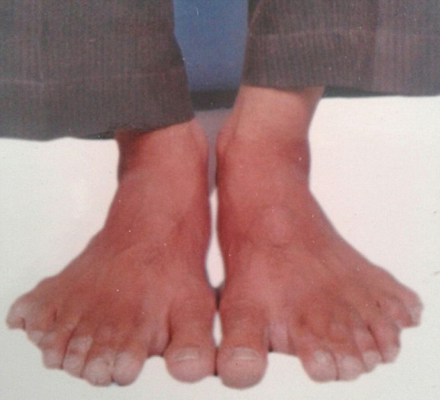 他的双脚各有7个脚趾,其中2个脚趾连在一起。(网页截图)