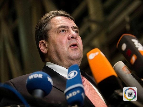 德国副总理加布里尔在柏林宣读一份声明。(图片来源:新华/法新)