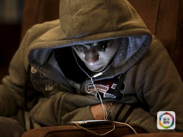 资料:瑞典北部滑雪胜地里克斯格伦森,一名难民在一家饭店大厅内使用着智能手机。(图片来源:新华/路透)