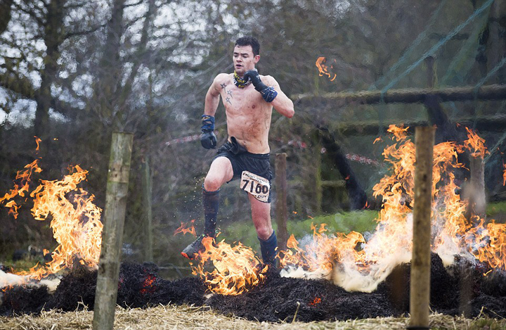 英“硬汉”障碍赛:跳火渠爬泥地挑战高难度(组图)