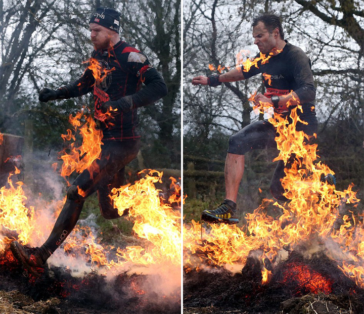 英“硬汉”障碍赛:跳火渠爬泥地挑战高难度(组图)