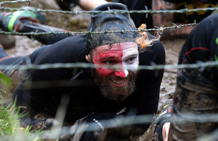英“硬汉”障碍赛:跳火渠爬泥地挑战高难度(组图)