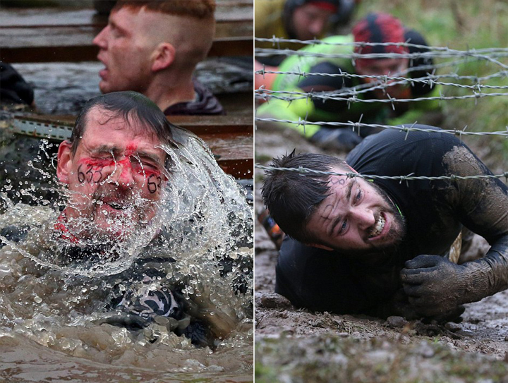 英“硬汉”障碍赛:跳火渠爬泥地挑战高难度(组图)