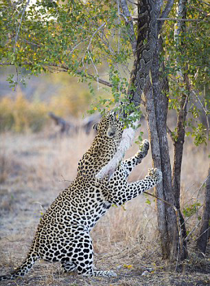 南非摄影师抓拍猎豹拉扯巨蟒尸体(组图)