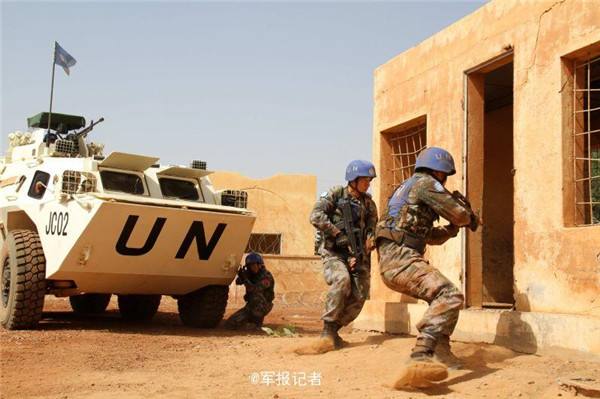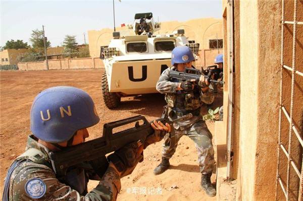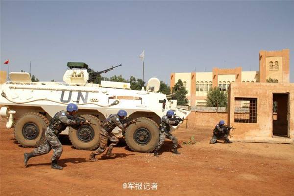 马里当地时间1月29日,中国第三批赴马里维和部队警卫分队以“防不明身份武装人员渗透袭击”为背景组织反恐演练,检验官兵应急处突能力。(韩立建)