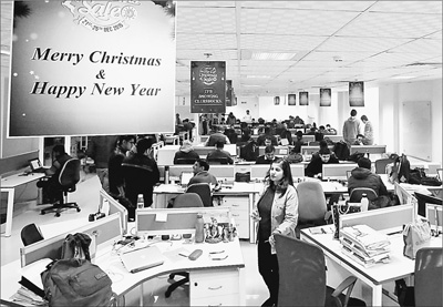 1月20日,印度首都新德里郊区,电商公司Shopclues的办公室内,员工们正在工作。这家公司于2011年在美国加利福尼亚州硅谷成立。