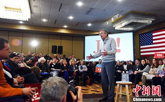 当地时间2月1日,美国总统大选共和党竞选人、前佛罗里达州州长杰布?布什在艾奥瓦州得梅因举行盛大竞选造势活动,呼吁选民在当天晚上的该州党团会议选举中投票支持他。艾奥瓦州党团会议选举是今年美国总统大选的“首战”,具有风向标意义。