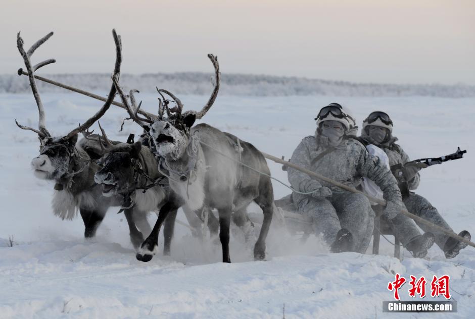 俄北极机械化步兵旅军演 驯鹿和雪橇狗协同作战(组图)