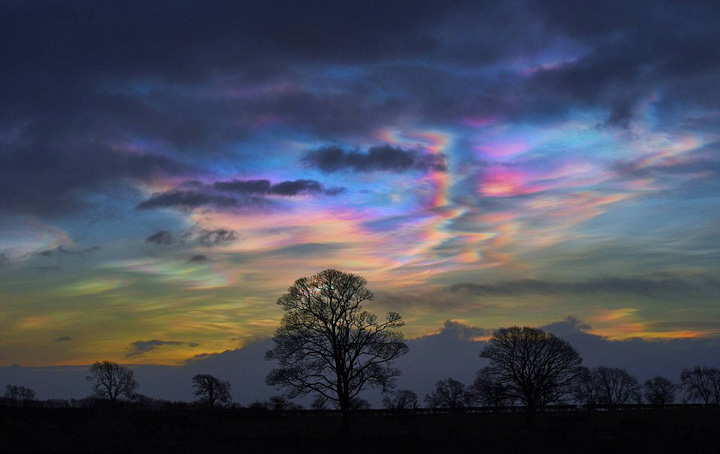 英天空现罕见珠母云 色彩梦幻如霓虹(组图)
