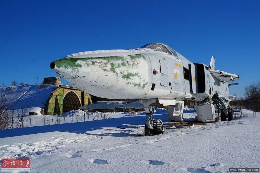 图为废弃的苏联空军基地内的苏-24战斗轰炸机,只剩机身还完好。