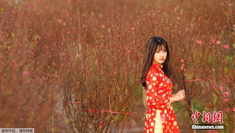 越南春节临近 美女桃花林拍照求好运(图)