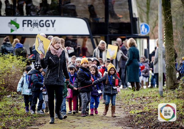 1月11日,在荷兰奈梅亨,难民儿童首次跟随老师前往学校上课。奈梅亨的难民学校为当地的565名难民儿童提供了不同层次的教育机会。(新华社/欧新中文)