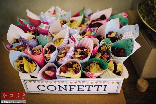 婚礼时撒在新娘新郎身上的五彩纸屑由风干的花瓣制作而成。