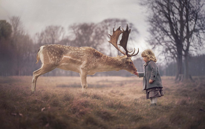 爱尔兰小兄妹喂食牧鹿 场景梦幻(组图)