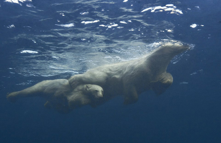 美摄像师捕捉北极熊教幼崽学游泳瞬间(组图)