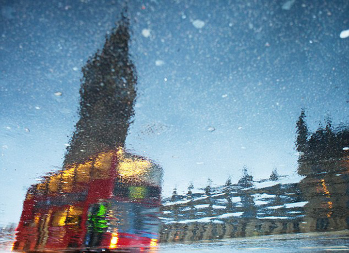 摄影师巧拍水坑倒影下的城市 美轮美奂(组图)