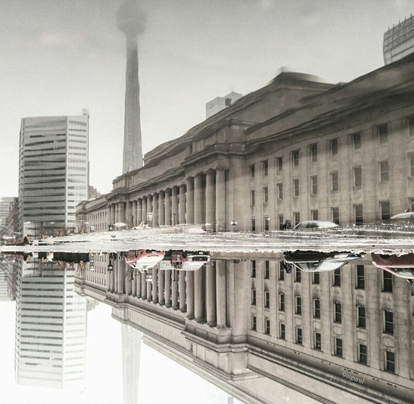 摄影师巧拍水坑倒影下的城市 美轮美奂(组图)