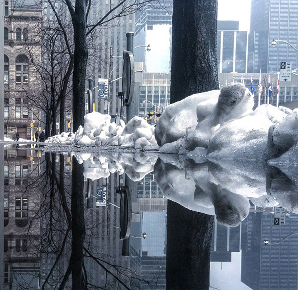 摄影师巧拍水坑倒影下的城市 美轮美奂(组图)