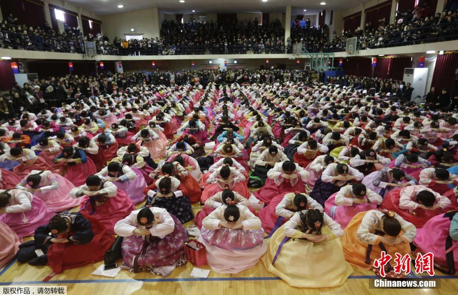 当地时间2月4日,韩国首尔Dongmyung女子高中的学生们身着传统韩装举行毕业典礼和成年礼。据悉,韩国各地的高中将于2月陆续举行毕业典礼。