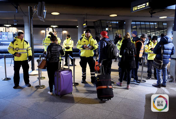 1月4日,在丹麦哥本哈根凯斯楚普火车站,安检人员检查旅客的证件。 当日,瑞典实施新的边境管控措施限制难民入境。(新华/路透)