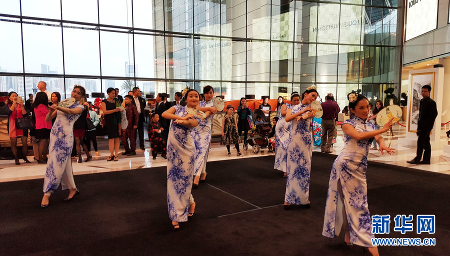 当地的华人文艺团体还献上了中国旗袍秀、彩绸舞、变脸等精美的文艺演出,引得到场嘉宾、观众和来店内购物的消费者阵阵掌声与喝彩。当地华侨文艺团体表演的“中国旗袍秀”。新华网记者安江摄