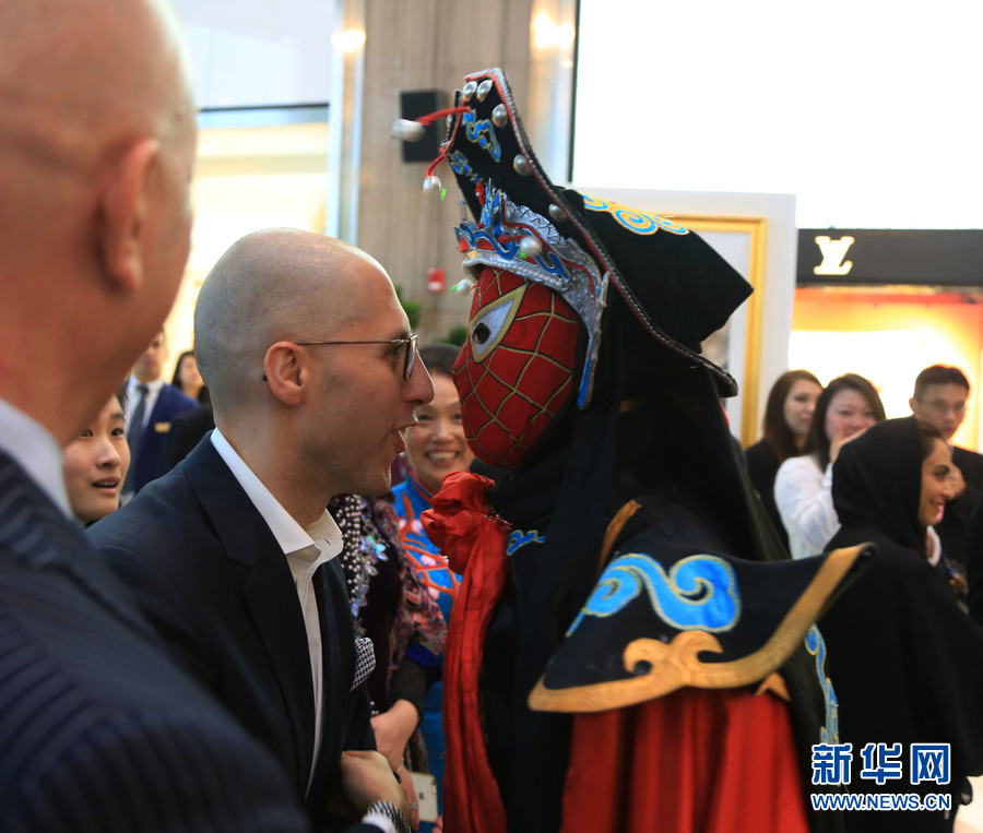 外国嘉宾与表演“变脸”的中国演员静距离接触。新华网记者安江摄
