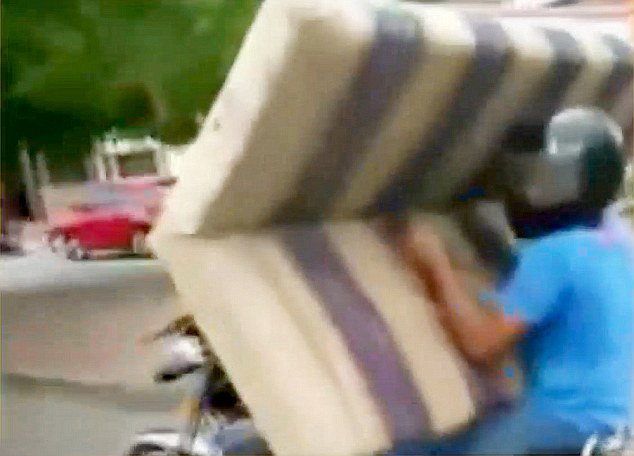 哥伦比亚两男子骑摩托车运大沙发惊呆路人(组图)
