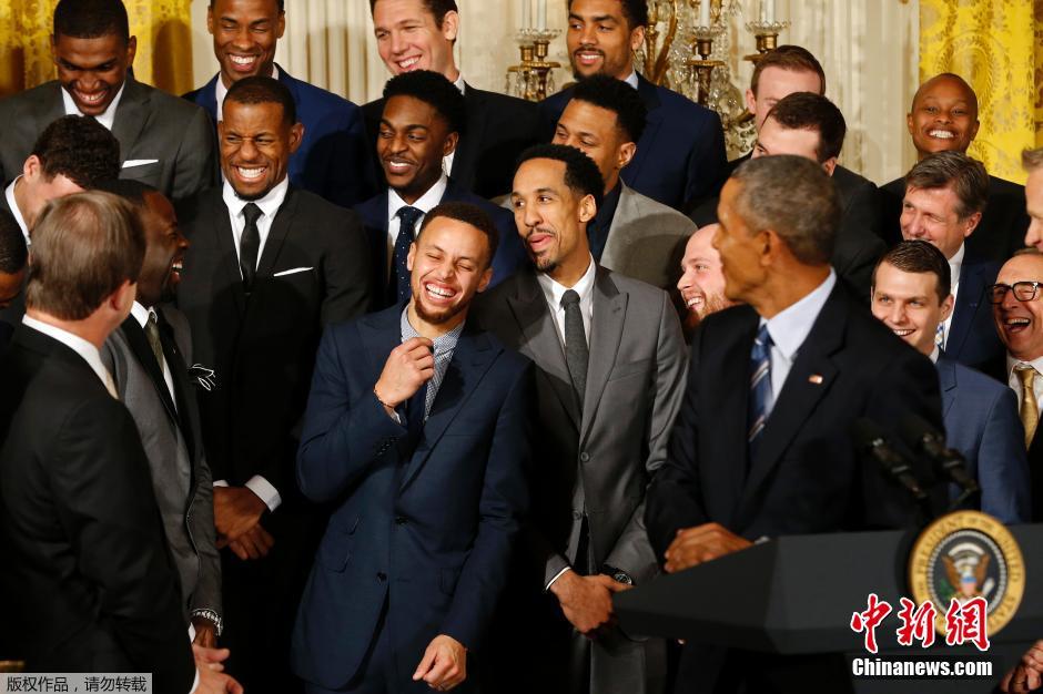 奥巴马接见金州勇士队 获赠44号球衣(组图)