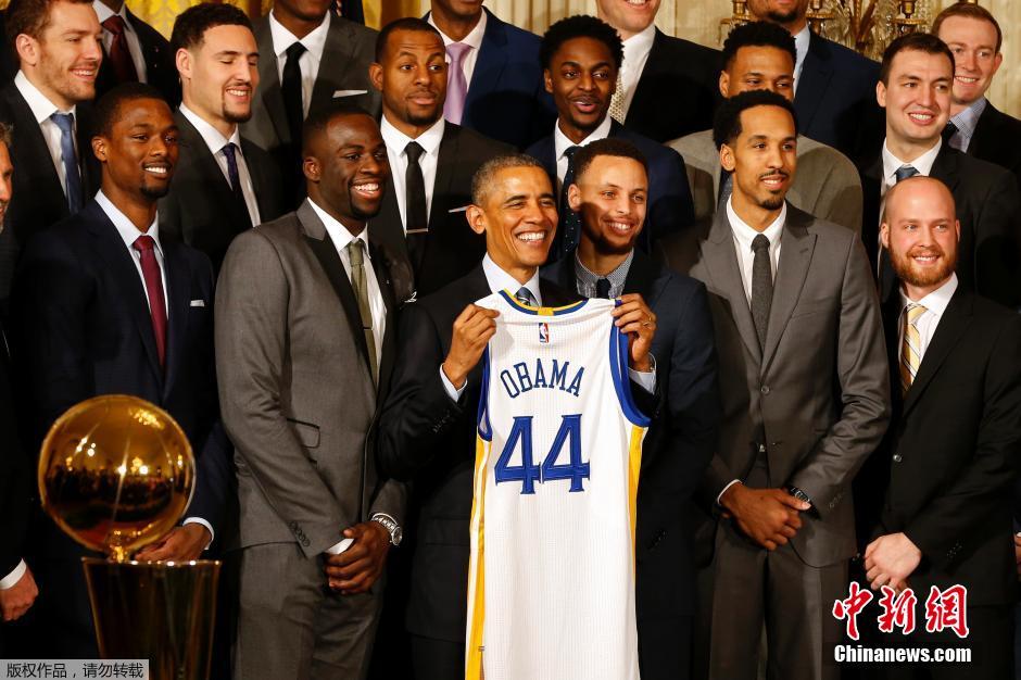 奥巴马接见金州勇士队 获赠44号球衣(组图)