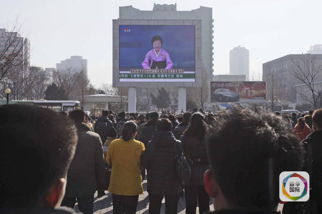 2月7日,在朝鲜平壤,民众观看电视介绍“光明星4号”卫星发射情况。(图片来源: 新华社/美联)