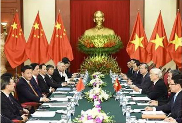 2015年11月5日至6日,习近平访问越南。习近平会晤了阮富仲总书记、张晋创主席、阮晋勇总理、阮生雄国会主席等越南党和国家领导人,双方谈双边关系,谈党的建设,谈治国理政,谈传统友谊,谈务实合作。双方就当前形势下两党两国的共同利益、共同挑战、共同需要、共同任务达成高度共识。