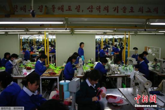 资料图片:开城工业园区,朝鲜工人在工厂工作。