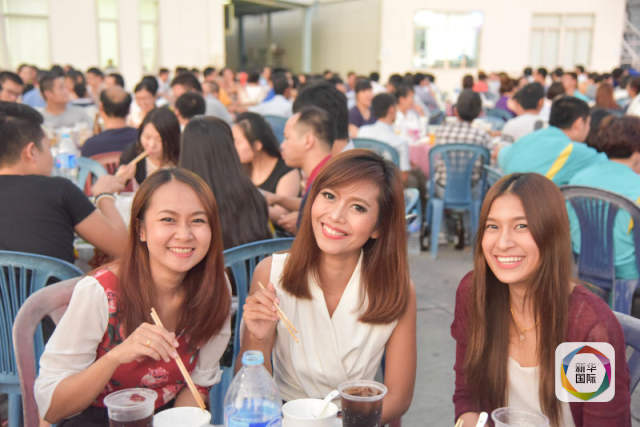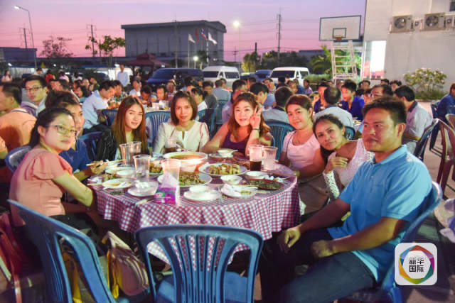 图为工业园中泰职工共同庆祝春节,一起聚餐。