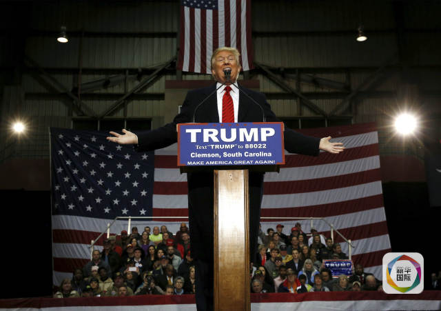 共和党总统竞选人特朗普2月10日在南卡罗莱纳州一场集会活动上发表演讲。(图片来源:新华/路透)