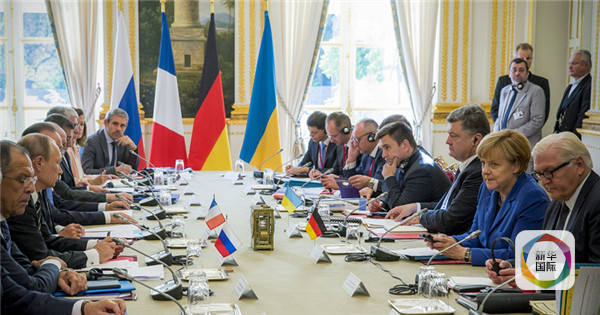 2015年10月2日,在法国巴黎爱丽舍宫,乌克兰问题4国首脑及代表团成员举行会谈,讨论乌克兰东部局势以及今年2月签署的新明斯克协议的实施情况。(图片来源:新华社/路透)