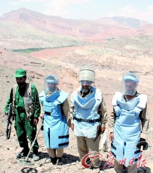 阿富汗到处是地雷,排雷人员在项目区域排雷。