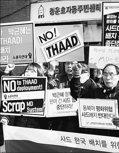 事实上,韩国民间和平团体早在去年美国防长阿什顿·卡特访韩时已就可能部署“萨德”表示过抗议。2月11日,韩国民众又在总统府附近发起抗议示威,要求政府中断部署“萨德”系统的谈判。