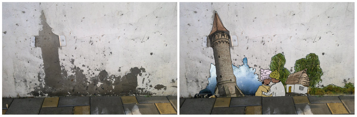 俄罗斯女画家以破败墙壁作画走红网络(图)
