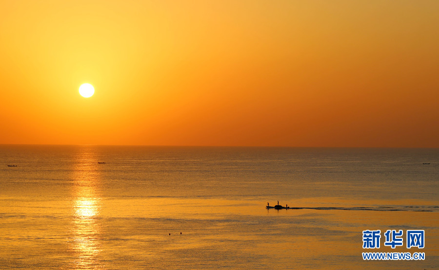 图为2月14日在阿联酋富查伊拉酋长国阿勒阿喀海滩上拍摄的日出。富查伊拉是阿联酋位于东海岸上的唯一酋长国,因此也是阿联酋唯一可以看到海上日出的地方。从富查伊拉港口出发,油轮可以不经霍尔木兹海峡而直接进入阿曼湾和印度洋。新华网记者李震摄
