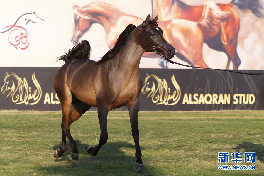 2月13日,一匹马参加2016阿拉伯纯种马“选美”国际锦标赛。新华网记者安江摄