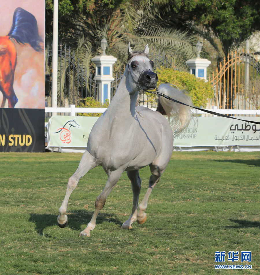 2月13日,一匹马参加2016阿拉伯纯种马“选美”国际锦标赛。新华网记者安江摄