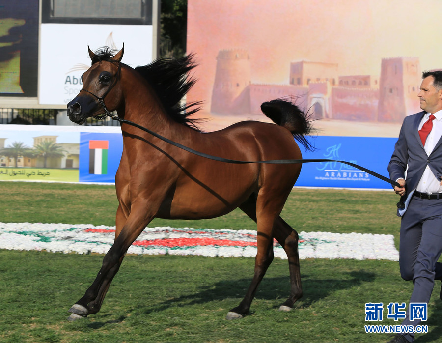 2月13日,驯导员牵领一匹马参加在阿联酋首都阿布扎比举办的2016阿拉伯纯种马“选美”国际锦标赛。新华网记者安江摄