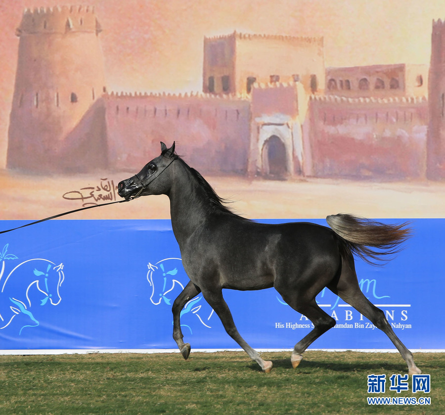 2月13日,一匹马参加2016阿拉伯纯种马“选美”国际锦标赛。新华网记者安江摄